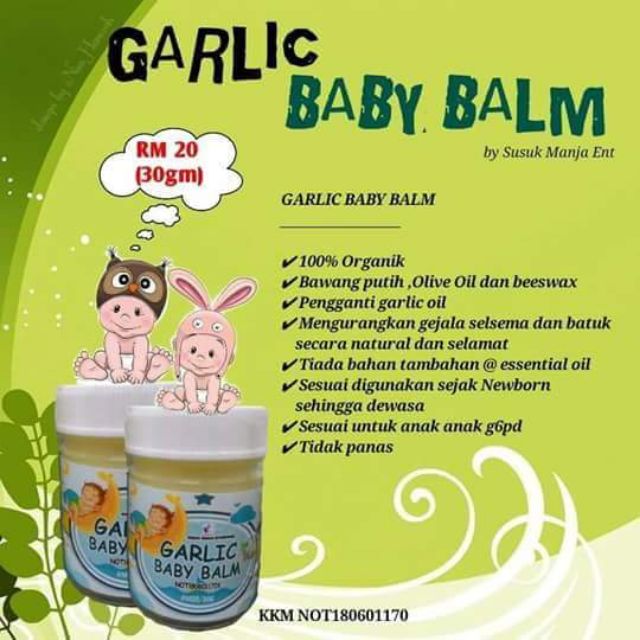 Garlic Baby Balm - Garlic Baby Balm & Sabun Lemon Jitra /AlorSetar - Baby ... - Buy the selected items together.. 5 out of 5 stars. Then store in an airtight container for up to 3 months. Between 30 to 60 minutes, dab a few more drops of the oil and massage your baby's chest again. Ships from and sold by life balm. Try sabun semambu rm 20.00.